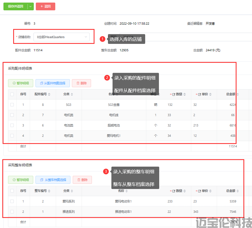 | 2支持录入电机、车架、电池编号、备注123,支持模糊搜索,方便售后 | |||